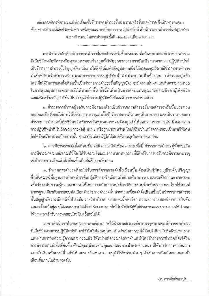 หลักเกณฑ์การพิจารณาแต่งตั้งเลื่อนขั้นตำรวจชั้นประทวนซึ่งเป็นทายาทของข้าราชการตำรวจที่เสียชีวิตหรือพิการ